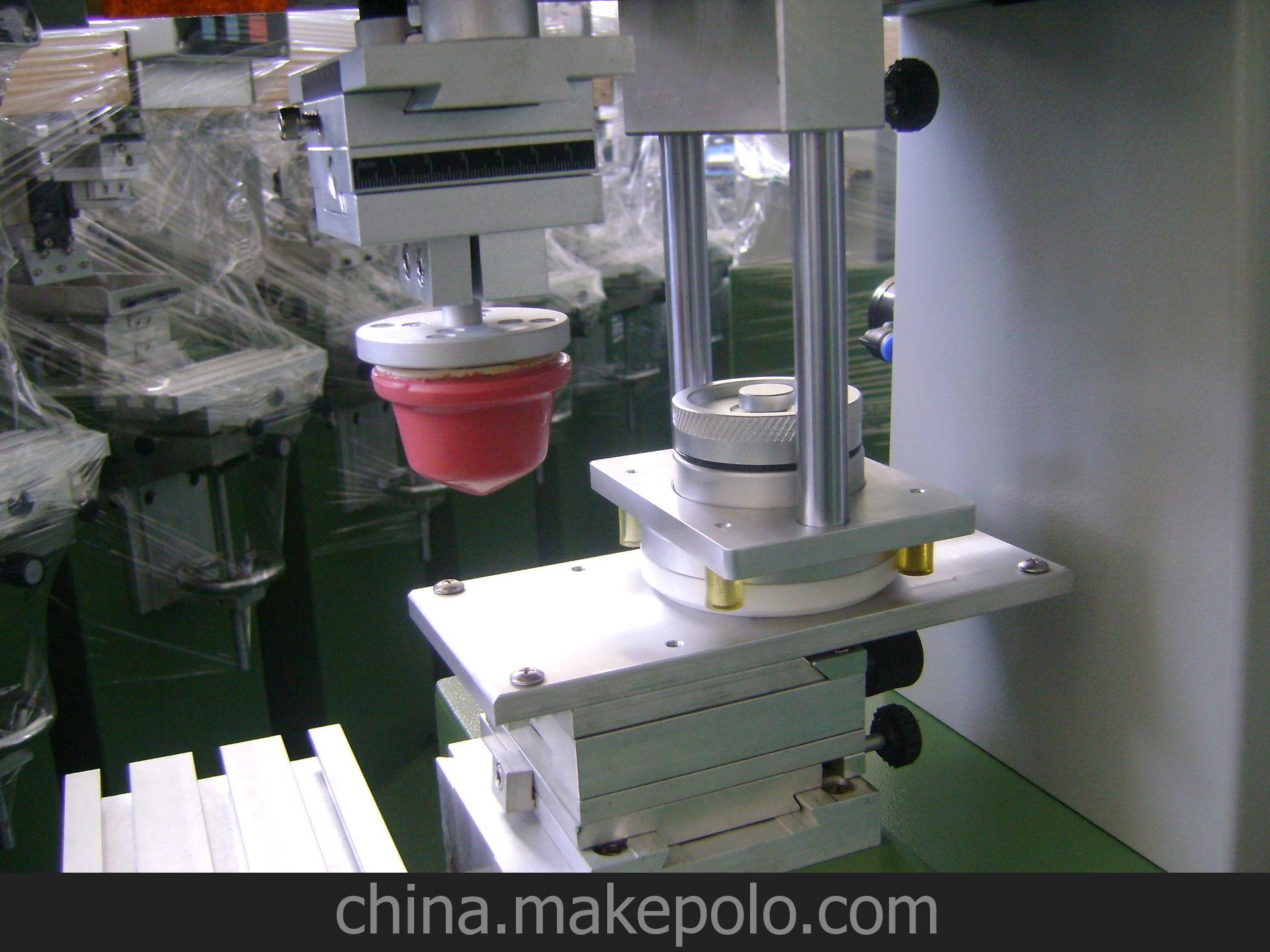 墨杯式移印機是屬于密閉式上墨方式,墨杯杯口裝鎢鋼刀環(huán),將油墨倒入墨杯中,然后倒蓋在鋼版上,做前后往復移動。油墨只會停留在鋼版上有內(nèi)容處,再利用膠頭將鋼版的油墨帶到被印物上形成轉(zhuǎn)印,其它作操時油墨始終保持在墨杯內(nèi)。其優(yōu)點是油墨較不易揮發(fā),作業(yè)時也比較不會有油墨、溶劑的味道。是屬于較環(huán)保型的印刷方式。 缺點是墨杯成本較高,印刷圖案大小受限于墨杯直徑大小。若圖案內(nèi)容大于墨杯尺寸則無法完復墨。